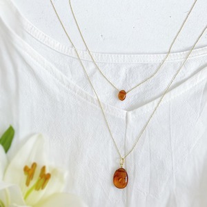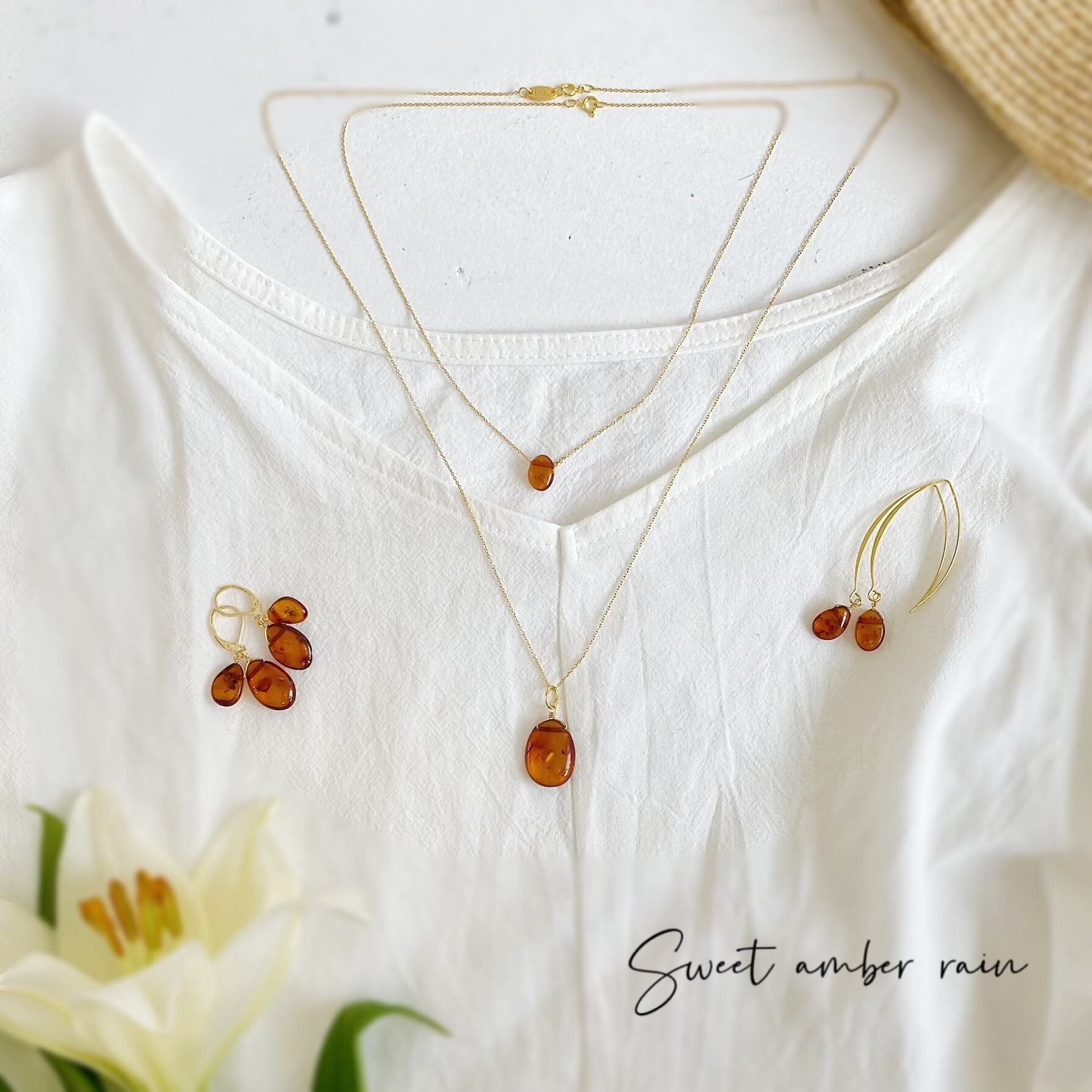 バルト海沿岸で採れる希少な天然琥珀・バルティックアンバーで仕立てた、大胆で爽やかなネックレス。