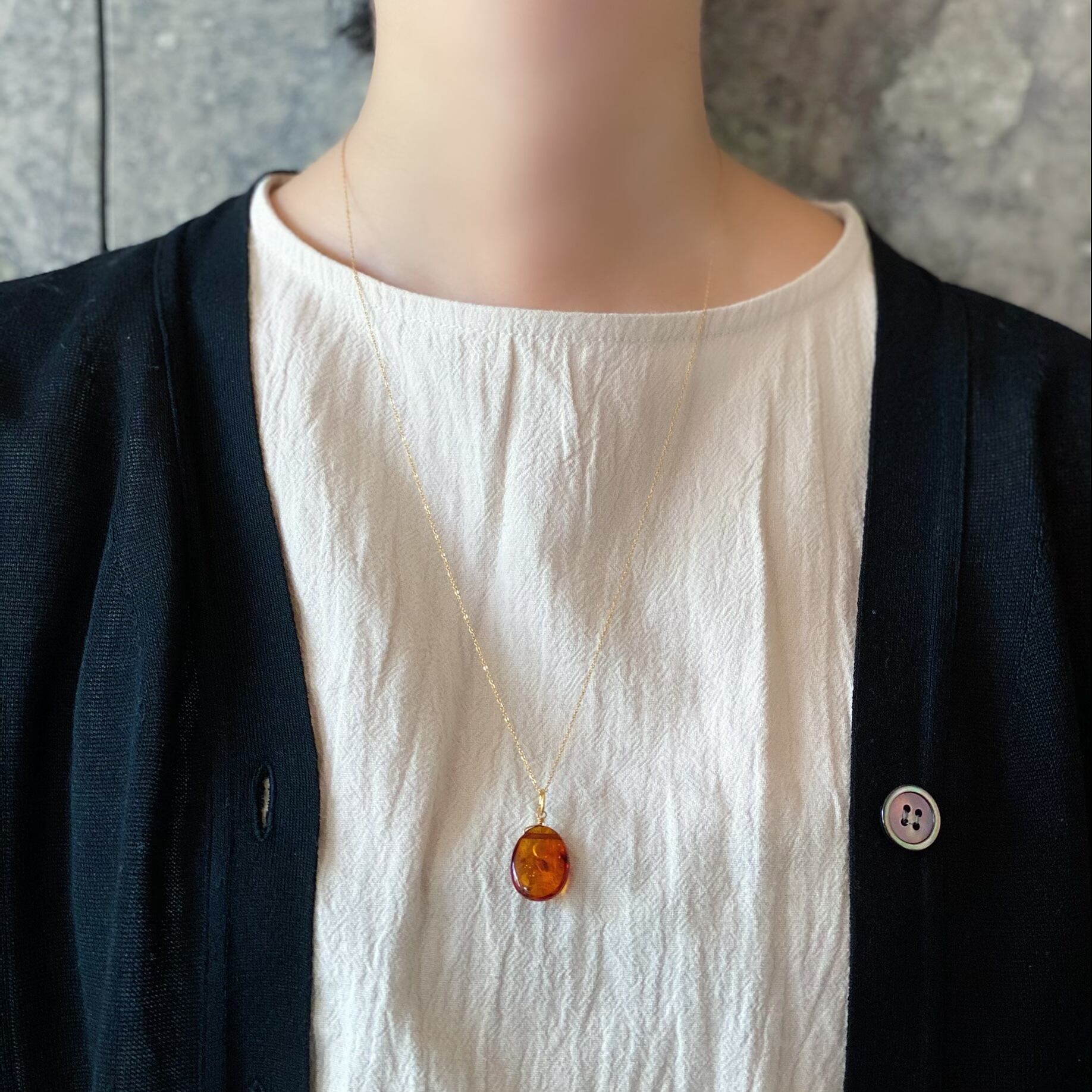 再販♡ 希少 バルト海琥珀の大粒セミロングネックレス -Claude-