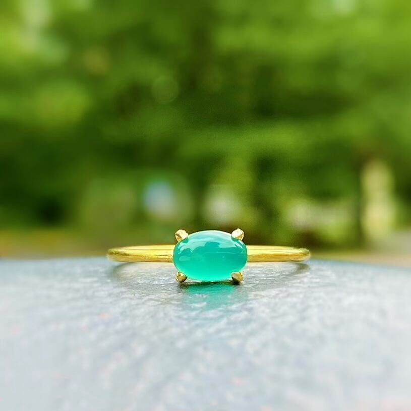 18K 魅せるグリーンオニキスの華奢リング - Chloe -