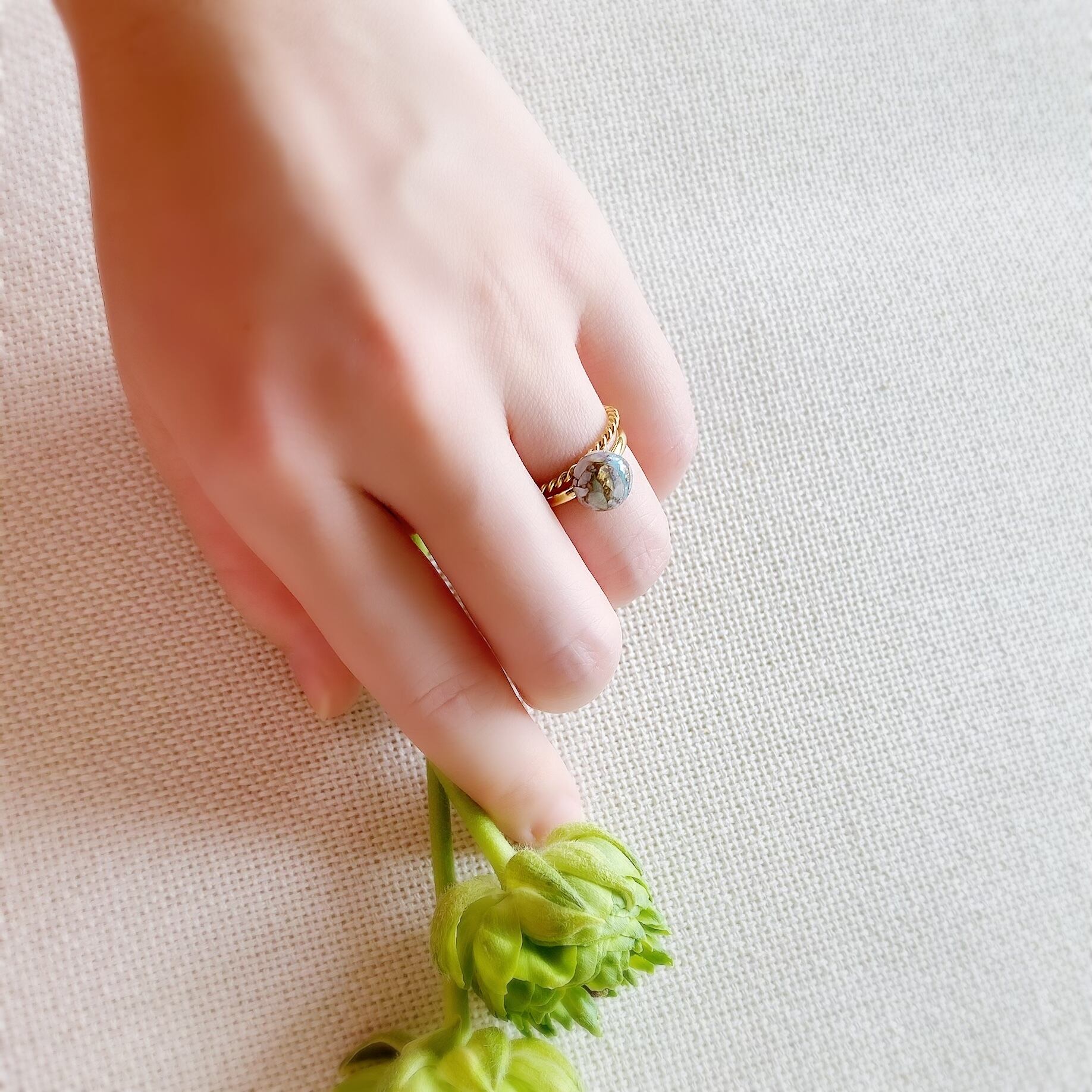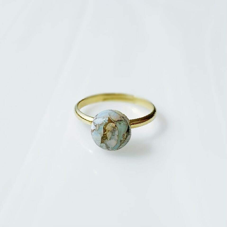 ブルーコッパーターコイズ &コッパーオパールのリング フリーサイズ -Eva&Emma-