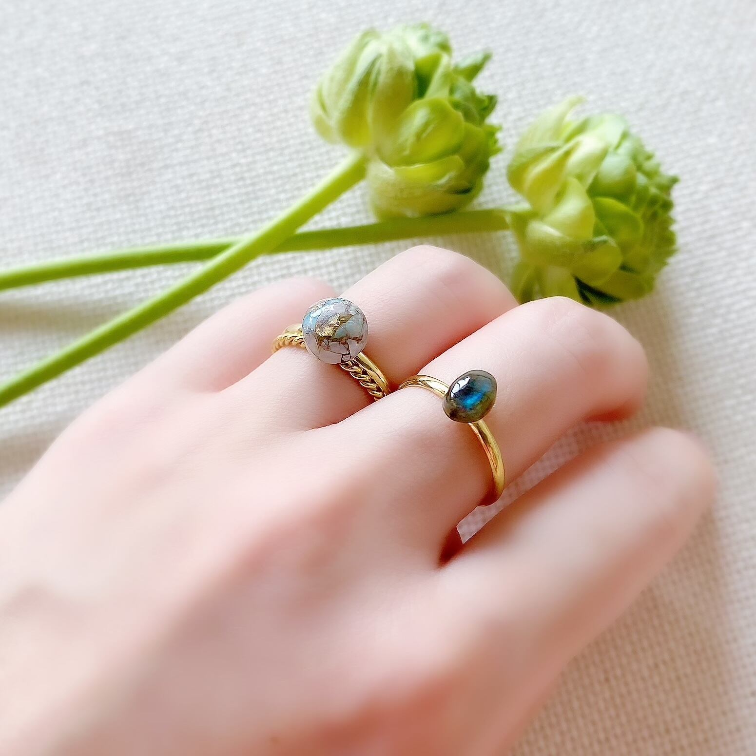 煌めく銅(コッパー)を天然石に張り合わせた、貴重な素材によるフリーサイズリング。