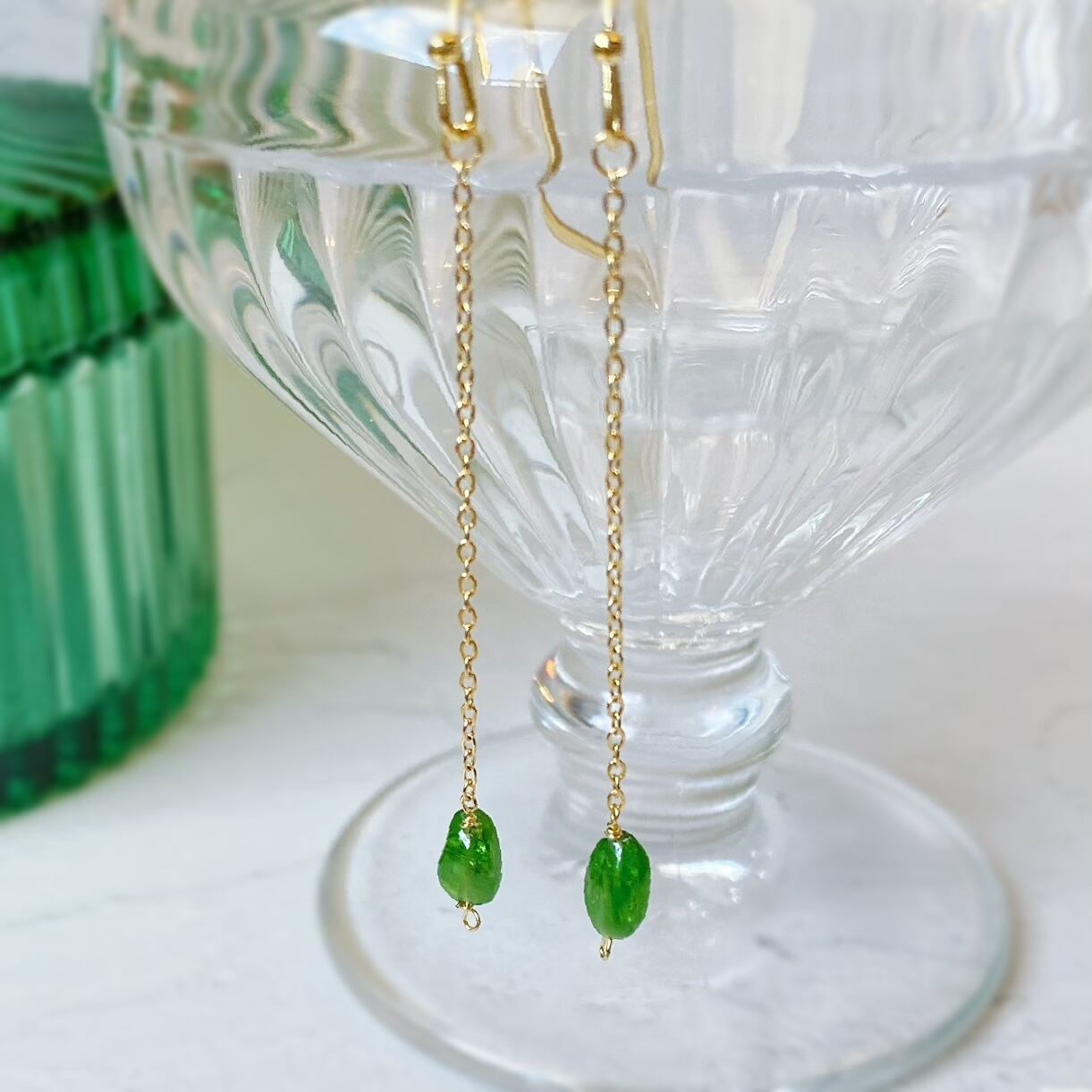 緑の光 クロムダイオプサイトのチェーンピアス/イヤリング -Olivia-
