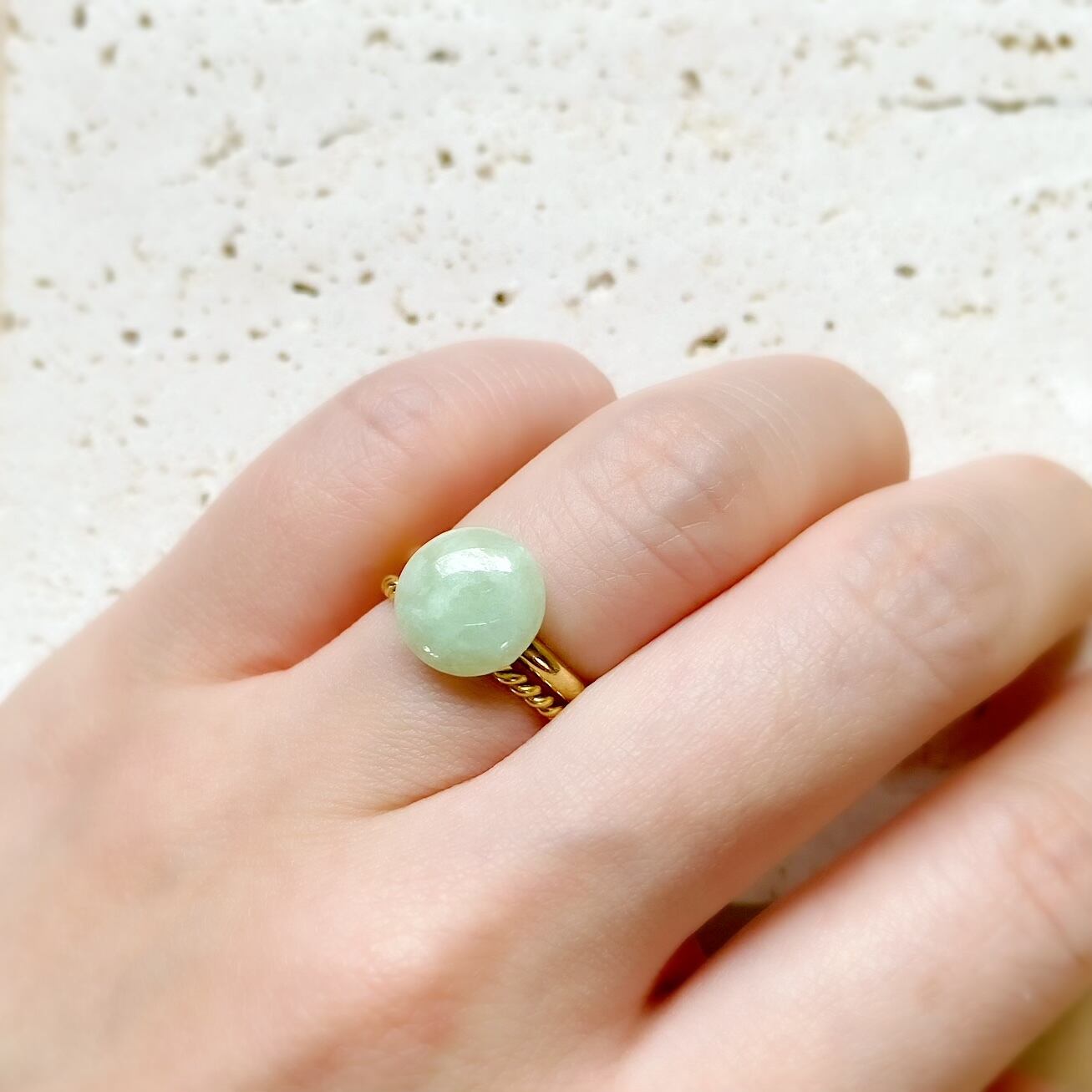 大粒 ビルマ翡翠のぷっくりリング フリーサイズ -Lieselotte-