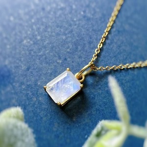 豊かな遊色が楽しめる極上レインボームーンストーンを厳選し、気品ある枠留めネックレスに仕立てました。